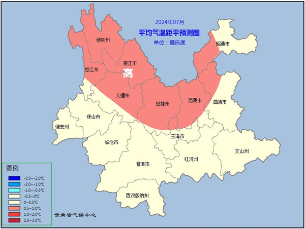 圖2 7月份平均氣溫距平預(yù)測(cè)示意圖