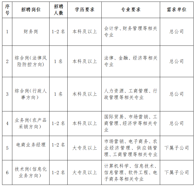 現(xiàn)結(jié)合公司發(fā)展需求,計劃面向社會公開招聘財務(wù)、法務(wù)、行政、業(yè)務(wù)采銷、電商運(yùn)營、信息化技術(shù)崗位人才。