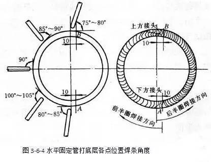 (5)平焊位置,即12點(diǎn)鐘位置,焊條與焊接方向管切線的夾角為75°-80°
