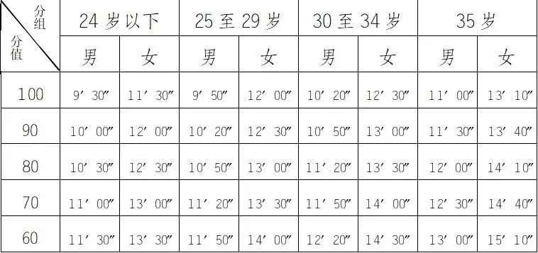 考評標(biāo)準(zhǔn):2000米跑(≤分秒)