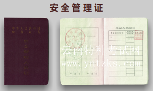 鍋爐、壓力容器、電梯、起重機(jī)械、客運(yùn)索道、場(廠)內(nèi)專用機(jī)動(dòng)車輛的管理人員統(tǒng)稱為特種設(shè)備安全管理人員,代號(hào):A。證書全國通用,國網(wǎng)查詢。4年一復(fù)審,由昆明市市場監(jiān)督管理局頒發(fā)。
